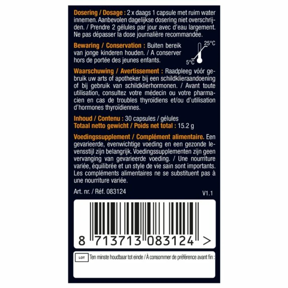 | Volumevoordeel | 1 x 30 capsules, 3 x 30 capsules |
