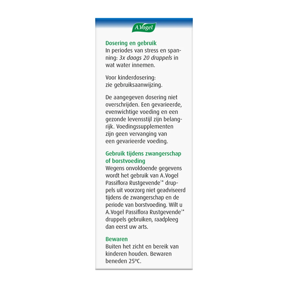 A.Vogel Passiflora Rustgevende1* DruppelsA.Vogel Passiflora Rustgevend1* is een voedingssupplement met de krachtige natuurlijke combinatie van valeriaan, passiebloem en citroenmelisse. Deze ingrediënten staan bekend om hun rustgevende invloed. Daarom kun je Passiflora Rustgevende1* druppels gebruiken bij innerlijke onrust en nerveuze gevoelens door periodes van stress of drukke, spannende tijden.1,* Passiflora Rustgevende1* Druppels is ook geschikt voor korte periodes van stress of spanning