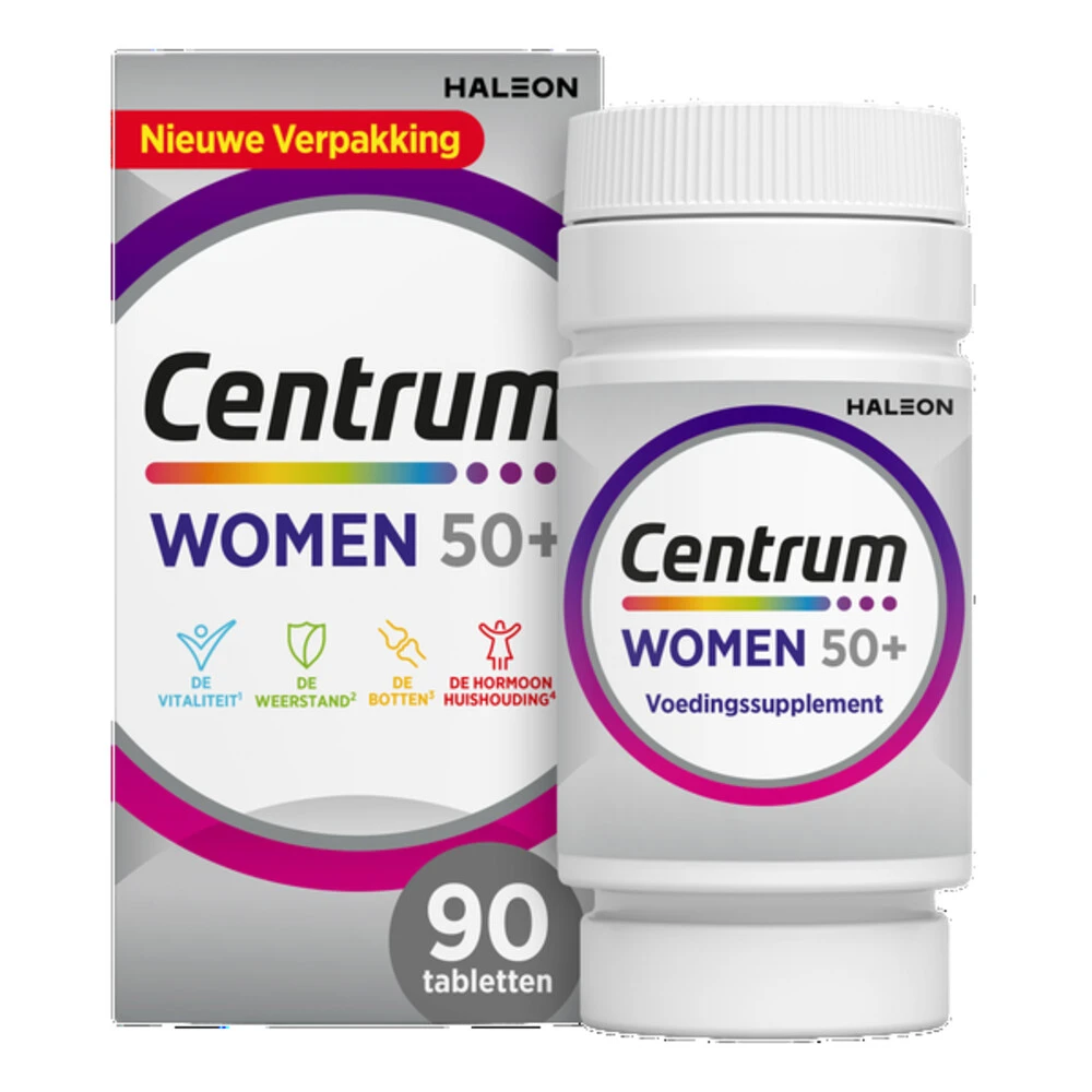 Centrum Women 50+ Multivitaminen en mineralenCentrum Women 50+ een A tot Z compleet vitamine en mineralen supplement dat speciaal is ontwikkeld om de voedingsbehoeften van vrouwen vanaf 50 jaar te ondersteunen. Vrouwen vanaf 50 jaar hebben andere voedingsbehoeften. Zo hebben vrouwen vanaf 50 jaar te maken met hormonale veranderingen zoals de overgang en kunnen zij gebaat zijn bij een aanvulling van extra vitaminen en mineralen.Centrum Women 50+ levert belangrijke voedingstoffen ter aanvulling op