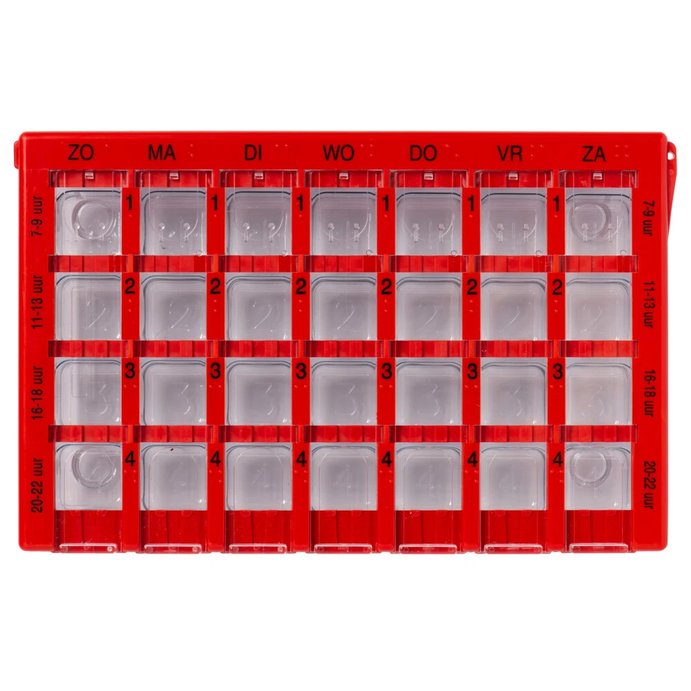 Dosett Doseerbox GrootDe Dosett Medicator Doseerdoos is een handige medicijndoos om de dagelijkse dosering medicatie in op te bergen. De Dosett Medicator Doseerdoos heeft een indeling van 7 dagen en per dag 4 aparte vakjes voor medicijnen. Zo is het gemakkelijk om de juiste dosis aan te houden. De Dosett Maxi is voorzien van een receptenkaart die gemakkelijk te verwisselen is, de inlegger is uitneembaar en kan gemakkelijk met de hand gewassen worden.Een opbergbox voor medicatieHandig in gebruik;